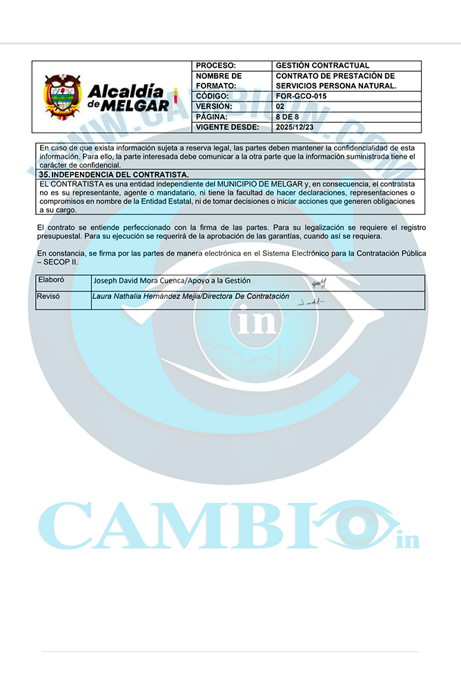 Copia: contrato de Leidy Esperanza Galeano Ortiz, esposa del jefe del Clan Hurtado. cambioin.com