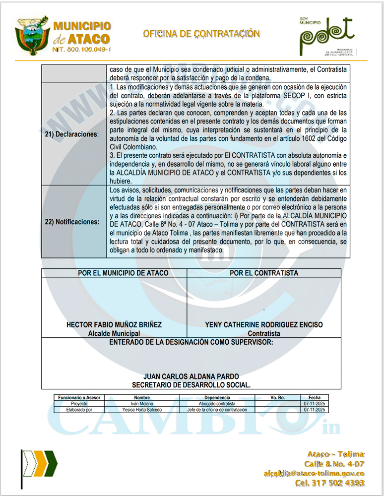 En exclusiva cambioin.com el portal de las noticias deja apartes de los contratos entregados a los asesores de la campaña de Edi Silva Perdomo a la Cámara por la curul de Paz del sur el Tolima.