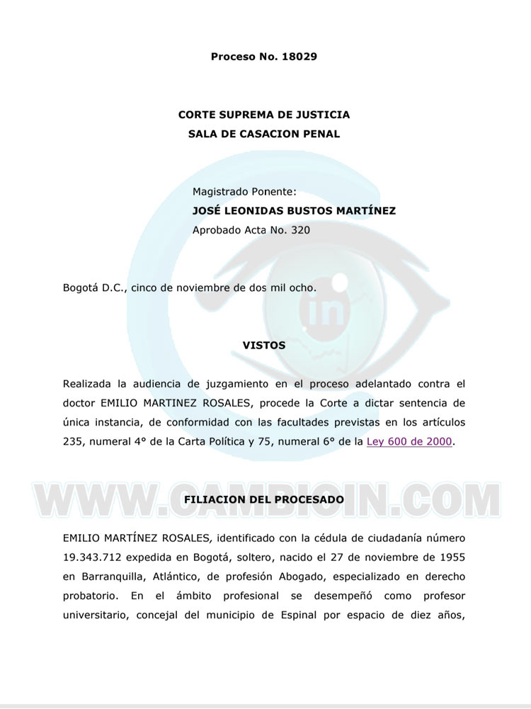 Copia: Proceso de pérdida de investidura de Emilio Martínez Rosales, en la Corte Suprema de Justicia. cambioin.com