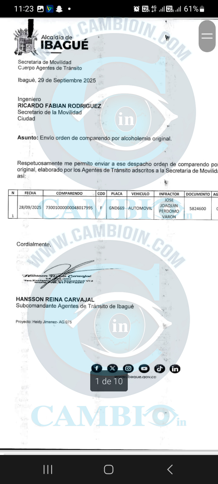 De inmediato Perdomo, se fue averiguar, y le dijeron que su número de cédula, al igual que su nombre, aparecían involucrados en un comparendo qué se hizo por alcoholemia. Teniendo los datos en su mano, comenzó a buscar las pruebas para demostrar que en primer lugar no tenía ni idea del carro que decía conducía esa noche. La otra que fue más fácil porque existen videos, que son contundentes porque demostraba qué a las 12:36 de la madrugada de ese 28 de septiembre de 2025, él estaba en su casa durmiendo, luego de un día fuerte de trabajo.
