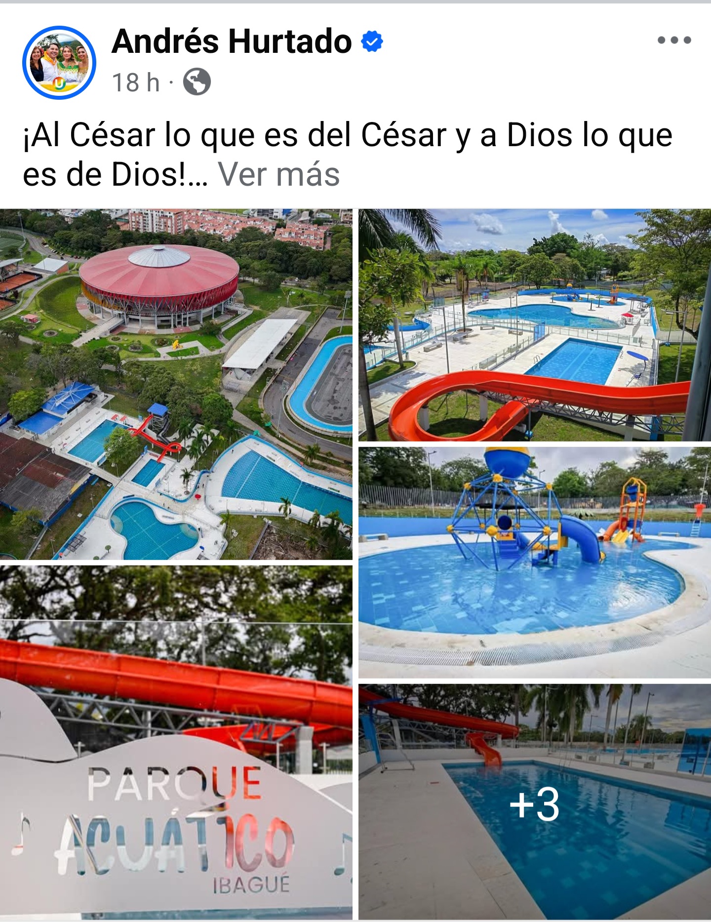Dentro del mensaje de Andrés Hurtado, dice: "dejamos en marcha con sus recursos garantizados y otros proyectos con los estudios, diseños y recursos asegurados listos para ejecutar, como es el caso de este Parque Acuático y el Parque Centenario entre otras obras". Un tema totalmente falso porque esos proyectos se tuvieron que adicionar en tiempo, dinero, y hasta hacer unos rediseños para poderlos culminar.