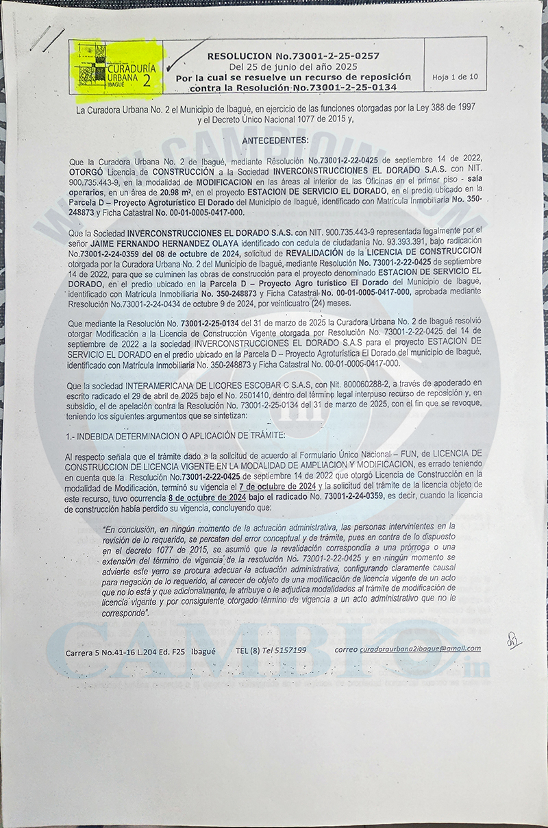 Copia 1: Curaduría Urbana 2, reconoce que emitió mal una licencia de construcción. Exclusivo cambioin.com
