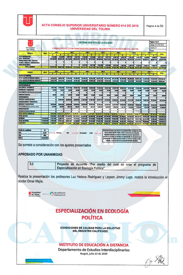 Una grave denuncia dejaría al descubierto la nula gestión de la actual administración de la Universidad del Tolima, para poner al servicio una especialización, que fue aprobada en el consejo superior del alma mater. La historia comenzó hace seis años cuando se dio vía libre para implementar un posgrado, y hasta la fecha no han realizado ningún tipo de diligencia, para cumplir las órdenes impartidas.