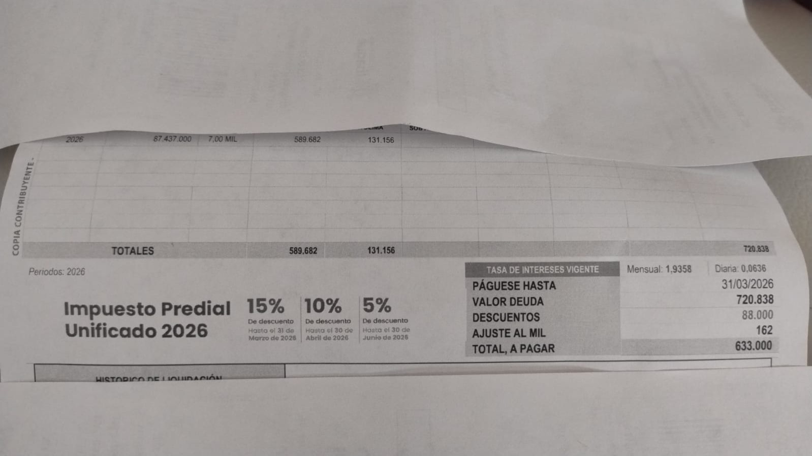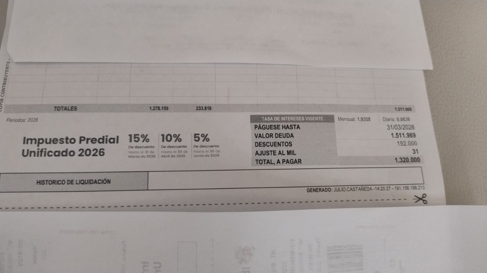 Se recomienda a quienes no han pagado el impuesto Predial, haga la operación matemática de descontar del total del valor que le cobran el 15% y si es menor a eso, pueden hacer el reclamo para que le emitan la nueva factura con lo que por ley le deben realizar.