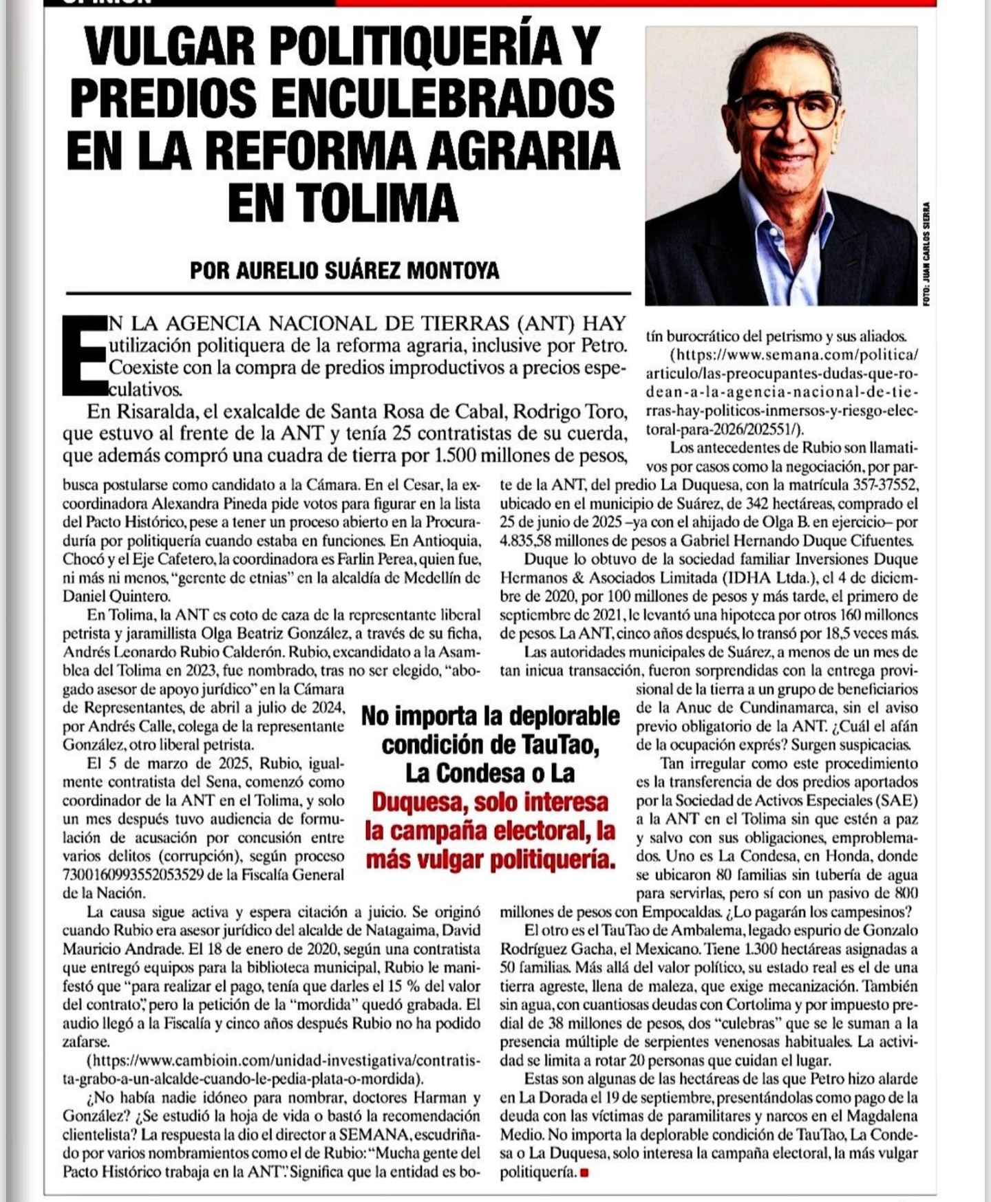 tín burocrático del petrismo y sus aliados. (https://www.semana.com/politica/articulo/las-preocupantes-dudas-que-ro-dean-a-la-agencia-nacional-de-tie-rras-hay-politicos-inmersos-y-riesgo-elec-toral-para-2026/202551/).