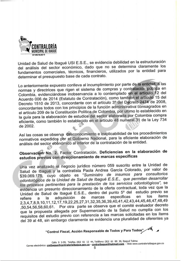 Copia: informe de la Contraloría de Ibagué. cambioin.com