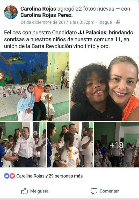 Como pruebas de la violación cometida por el político y su mano derecha, se anexan al documento, fotos y mensajes de Facebook de la gerente de la campaña del aspirante del CD, donde entregan a sus electores dádivas a cambio de su apoyo en las elecciones a realizarse el próximo 11 de marzo de 2018.